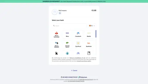 Los bancos disponibles deben cumplir también con la normativa PSD2 y deben ser integrados individualmente. Un equipo se encarga de incrementar el soporte de bancos de diferentes países de la Unión Europea dentro de Fintecture.